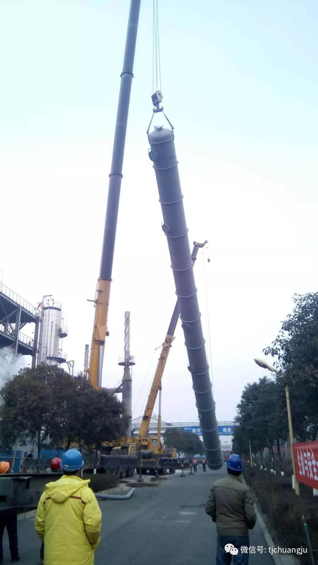 下圖為濟(jì)源某公司苯加氫四臺(tái)塔安裝工程現(xiàn)場(chǎng),此工程從2018年12月29日開(kāi)始,預(yù)計(jì)2019年1月20日結(jié)束。近一個(gè)月的時(shí)間,他們一直抓緊建設(shè),毫不懈怠。