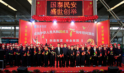 2019年10月12日為慶祝中華人民共和國(guó)成立70周年,天津市創(chuàng)舉科技股份有限公司(以下簡(jiǎn)稱“創(chuàng)舉公司”)邀請(qǐng)紅楓藝術(shù)團(tuán)舉辦“不忘初心、牢記使命”專場(chǎng)慰問(wèn)演出。創(chuàng)舉公司中高層領(lǐng)導(dǎo)及子公司一線生產(chǎn)員工近百人出席觀看。