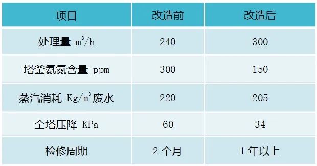 2019年更換為我公司CJVP塔板后,裝置運(yùn)行穩(wěn)定,檢修周期延長,處理量擴(kuò)大25%,蒸汽消耗節(jié)省5%以上,改造前后數(shù)據(jù)對(duì)比如下: