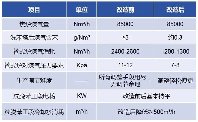 改造后貧油加熱、洗油再生控制更容易,同時可以改善循環(huán)洗油質(zhì)量,以后如果使用中壓蒸汽加熱,效果會更好。